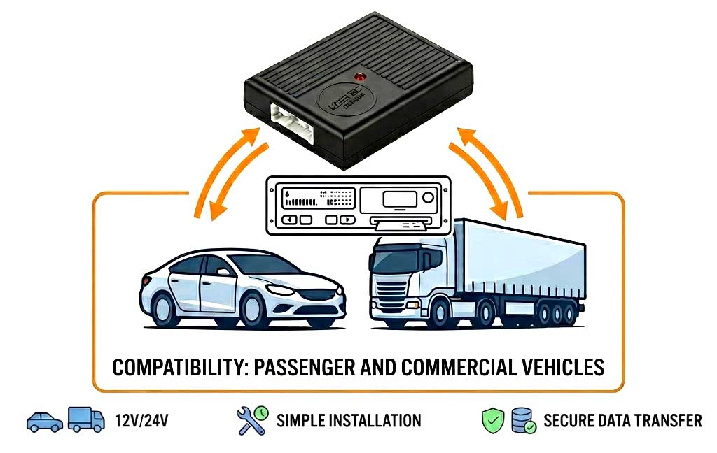 It is an ideal solution for vans and commercial vehicles that must comply with new EU tachograph regulations from 2026.