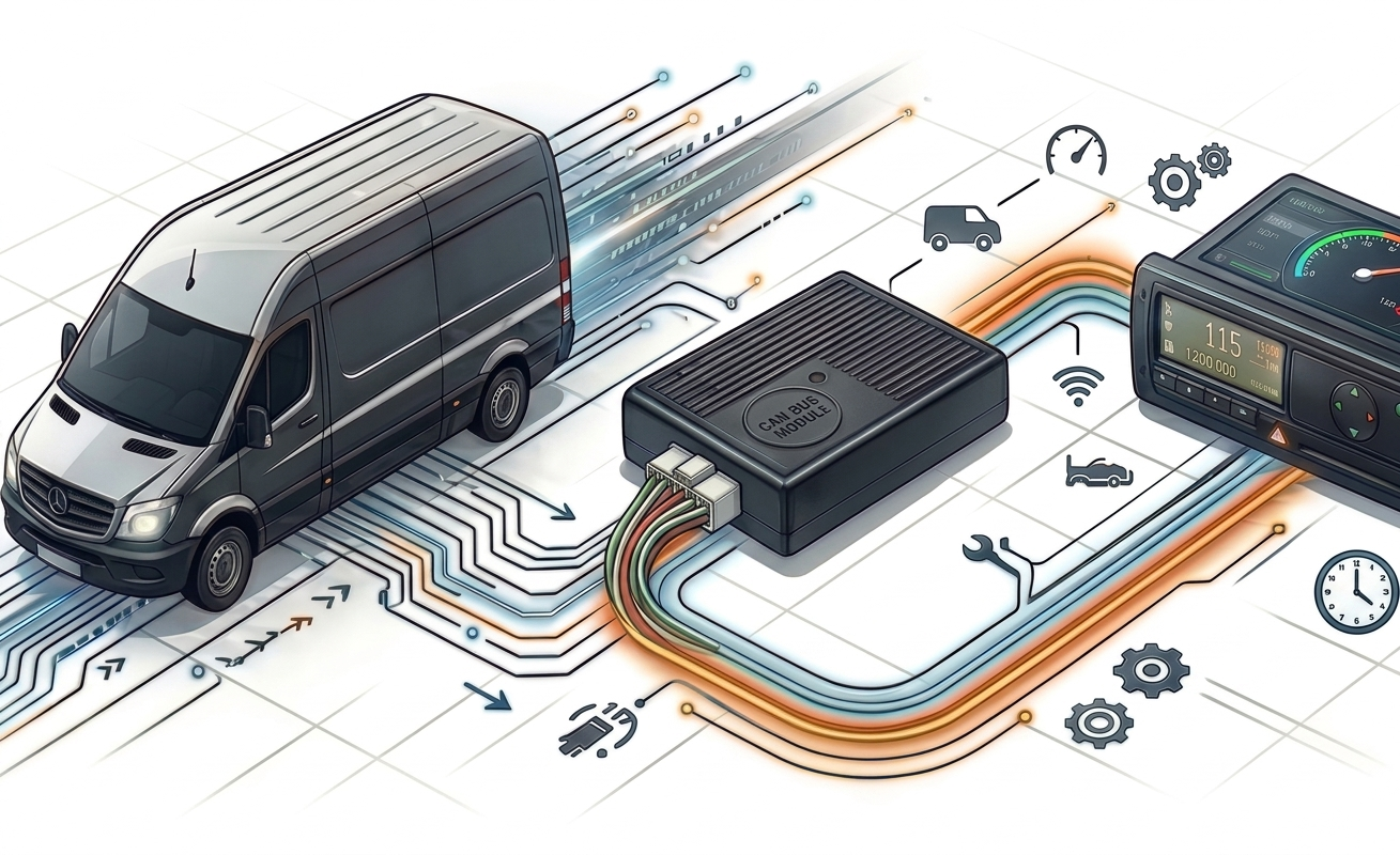 The module's key advantage is its ability to provide the speed signal essential for the installation of speedometers and tachographs. By reading data directly from the CAN bus, it generates all necessary output signals without time-consuming wire searching or invasive interference with the vehicle's original wiring. This ensures significantly faster installation, minimizes errors, and increases overall efficiency.